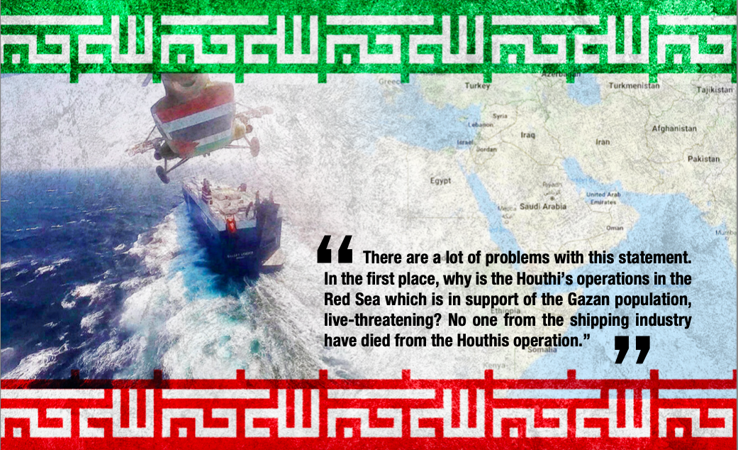 - There are a lot of problems with this statement. In the first place, why is the Houthi’s operations in the Red Sea which is in support of the Gazan population, live-threatening? No one from the shipping industry have died from the Houthis operation.