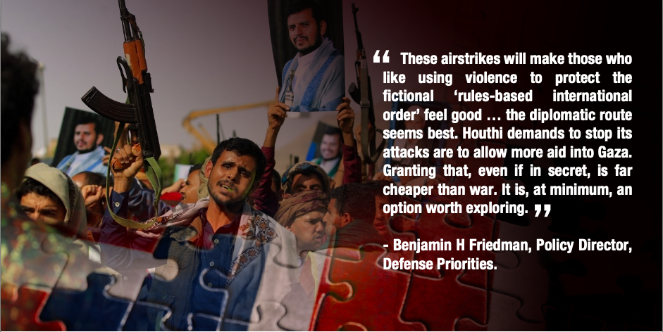 - The US, UK and their allies have maintained that their strikes on Houthi installations in Yemen are of a defensive nature and fully legal, but there are more than meet the eyes on this stance of theirs.