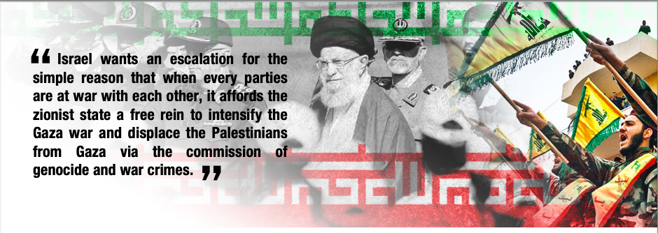 - Israel wants an escalation for the simple reason that when every parties are at war with each other, it affords Israel a free rein to intensify the Gaza war and displace the Palestinians from Gaza via the commission of genocide and war crimes.