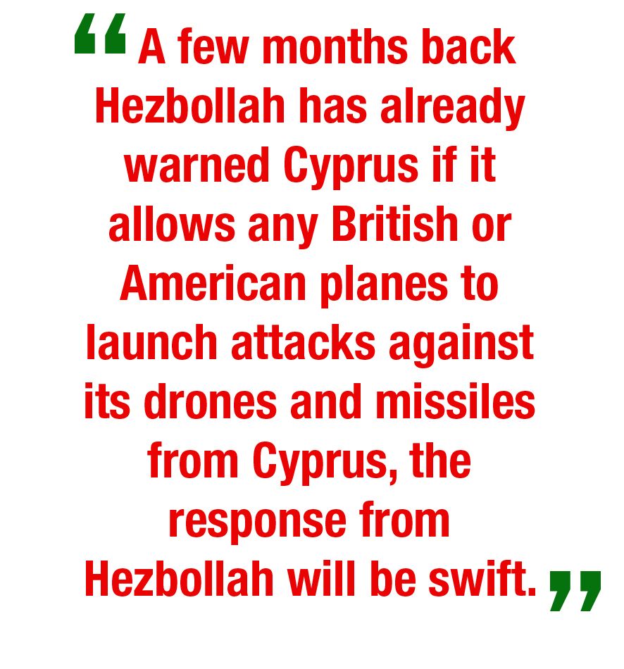 - A few months back Hezbollah has already warned Cyprus if it allows any British or American planes to launch attacks against its drones and missiles from Cyprus, the response from Hezbollah will be swift.
