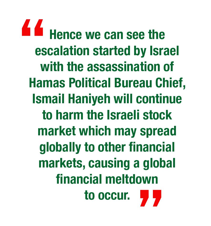 - Hence we can see the escalation started by Israel with the assassination of Hamas Political Bureau Chief, Ismail Haniyeh will continue to harm the Israeli stock market which may spread globally to other financial markets, causing a global financial meltdown to occur.